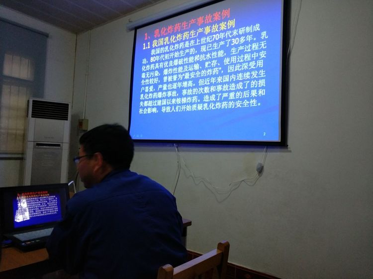 接下來,公司副總經(jīng)理鄭衛(wèi)東開展了具體的復(fù)工安全教育培訓(xùn)工作,通過對近幾年來國內(nèi)發(fā)生的乳化炸藥安全生產(chǎn)事故案例的統(tǒng)計分析,結(jié)合一些事故案例的真實視頻,對發(fā)生事故的直接原因和本質(zhì)原因進行剖析,對參與人員進行了培訓(xùn),讓參與培訓(xùn)的人員,進一步了解到事故發(fā)生的原因及如何預(yù)防等。最后,鄭總結(jié)合公司的一些實際狀況,對我們身邊實實在在的一些問題進行舉例分析,如自控系統(tǒng)的穩(wěn)定性、燙傷、機械傷害等,直觀的告訴我們生產(chǎn)過程中安全的重要性,使大家進一步緊繃安全之弦。