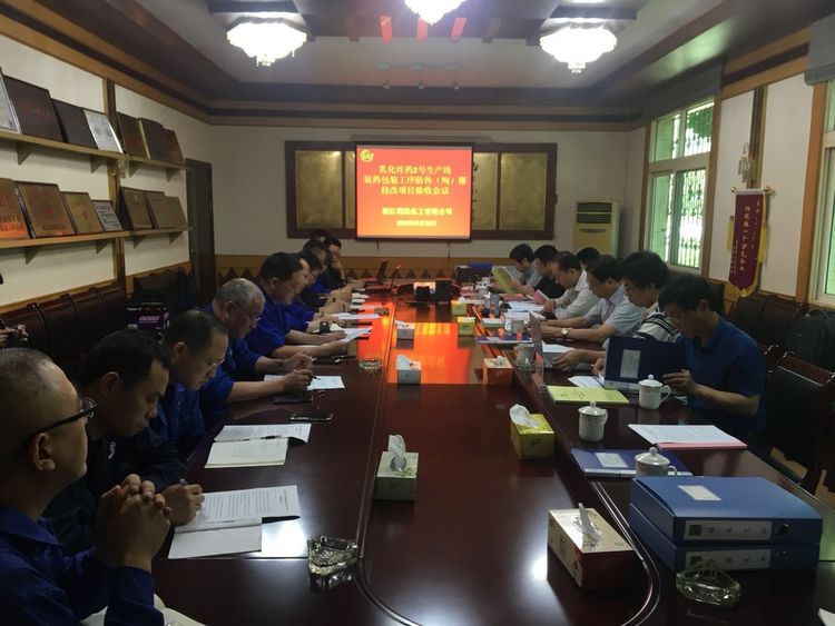 2018年5月18日上午9:00,省工辦領(lǐng)導(dǎo)、行業(yè)專家組成員、公司有關(guān)人員在控股公司會議室召開了乳化炸藥2號生產(chǎn)線裝藥包裝工序傳(殉)爆技術(shù)改造項目驗收會。