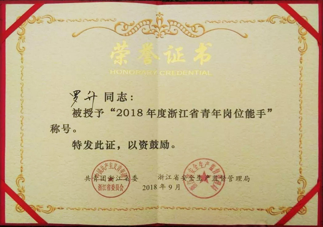 【圖】羅升獲得的“青年崗位能手”稱號 證書