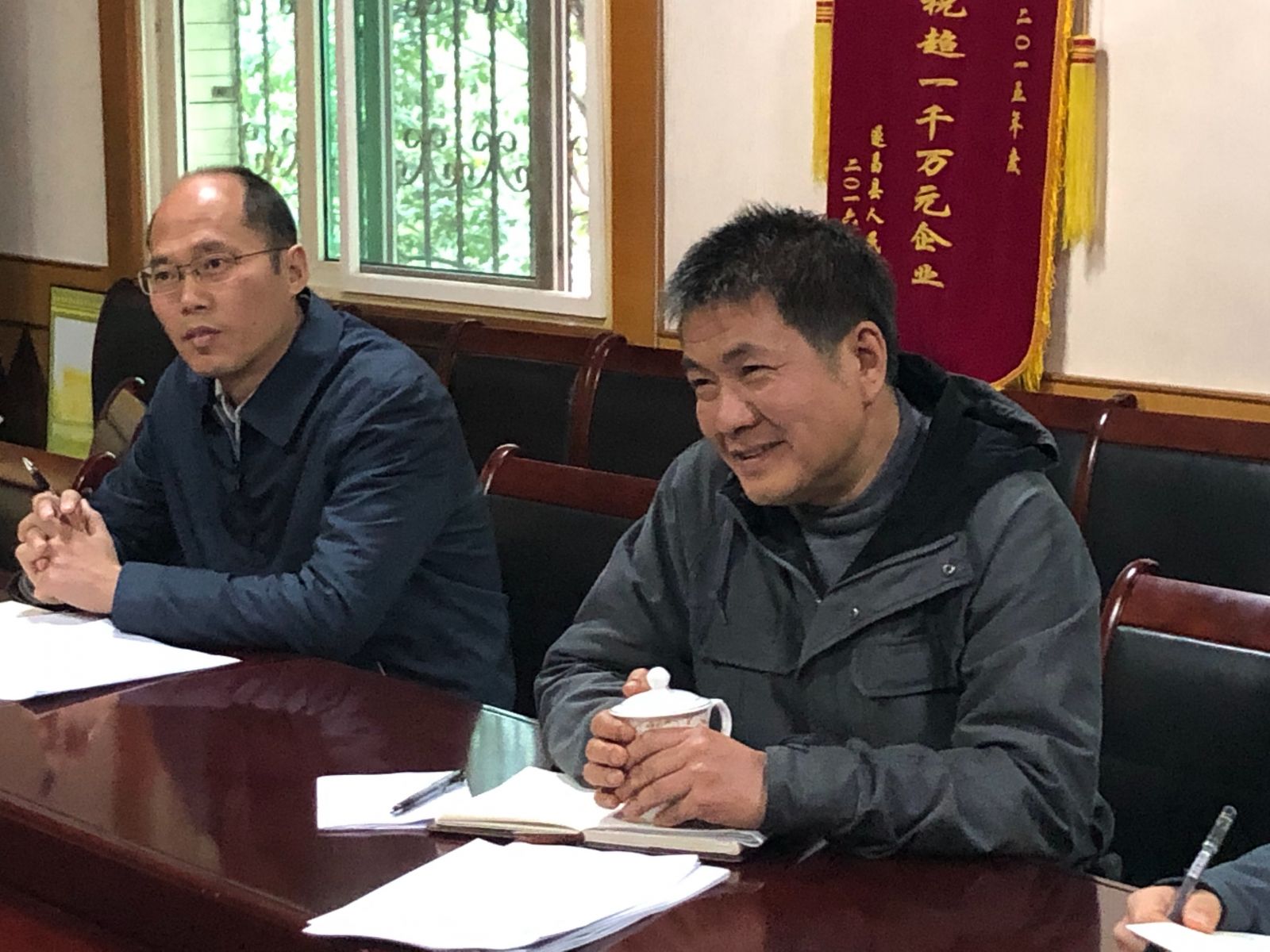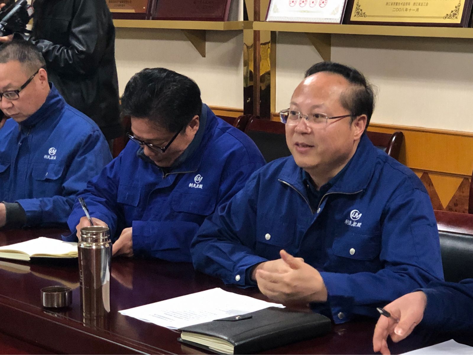 2019年4月2日下午,遂昌縣人大尹建中主任攜縣經(jīng)商局局長(zhǎng)吳華軍等相關(guān)人員走訪浙江利民控股股份有限公司。于控股集團(tuán)會(huì)議室召開調(diào)研座談會(huì)。公司董事長(zhǎng)李峰、財(cái)務(wù)總監(jiān)翟水根、副總經(jīng)理濮發(fā)祥、辦公室主任李軍一同參加交流。