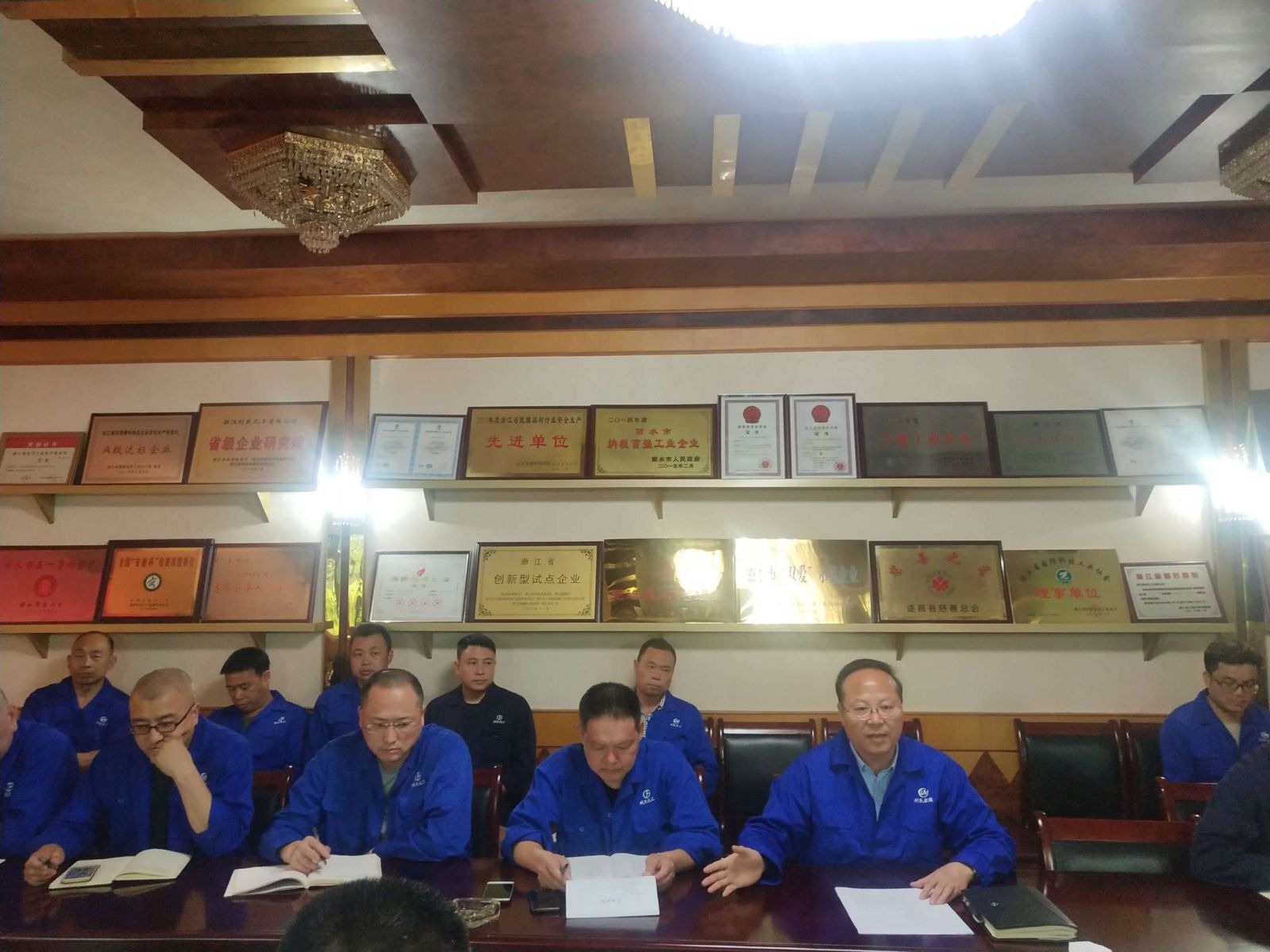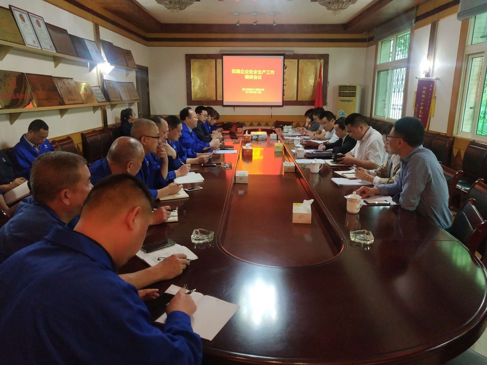 2019年5月14日,麗水市發(fā)改委副主任周立軍攜同縣民爆行業(yè)監(jiān)管部門到公司調(diào)研安全生產(chǎn)工作,董事長李峰、總經(jīng)理吳均及公司中層以上干部陪同調(diào)研并參加調(diào)研座談。