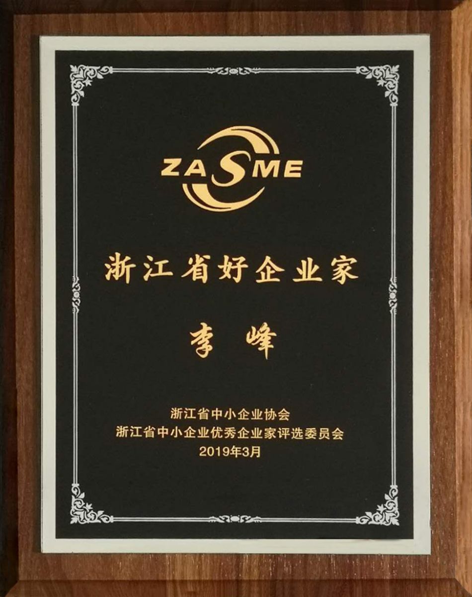 3月26日,李峰董事長出席參加頒獎儀式。據(jù)悉我省這是首次在中小企業(yè)范圍內(nèi)評選浙江省好企業(yè)家,獲評"浙江省好企業(yè)家"需擔任企業(yè)主要領(lǐng)導(dǎo)職務(wù)5年以上,具有成功的創(chuàng)業(yè)創(chuàng)新實踐和獨特的經(jīng)營管理理念,企業(yè)業(yè)績突出,并在業(yè)界獲得廣泛認同;履行社會責(zé)任,奉獻企業(yè)愛心,參與公益慈善事業(yè)、精準扶貧行動、應(yīng)急救災(zāi)等,自覺做履行政治責(zé)任、經(jīng)濟責(zé)任、社會責(zé)任的模范;被公眾認為好企業(yè)、好產(chǎn)品、好口碑的帶頭人,在行業(yè)中具有示范引領(lǐng)作用;企業(yè)近3年內(nèi)未發(fā)生重特大環(huán)境污染、安全責(zé)任、違紀違法等。